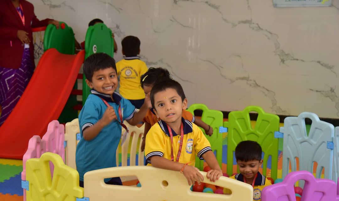 Our school campus at V. Madepalli – X Road, Krishnagiri, is spread over a peaceful and pollution-free environment that is ideal for learning. With aesthetically designed buildings, spacious classrooms, and vibrant activity zones, the entire layout promotes free movement, active engagement, and safety.